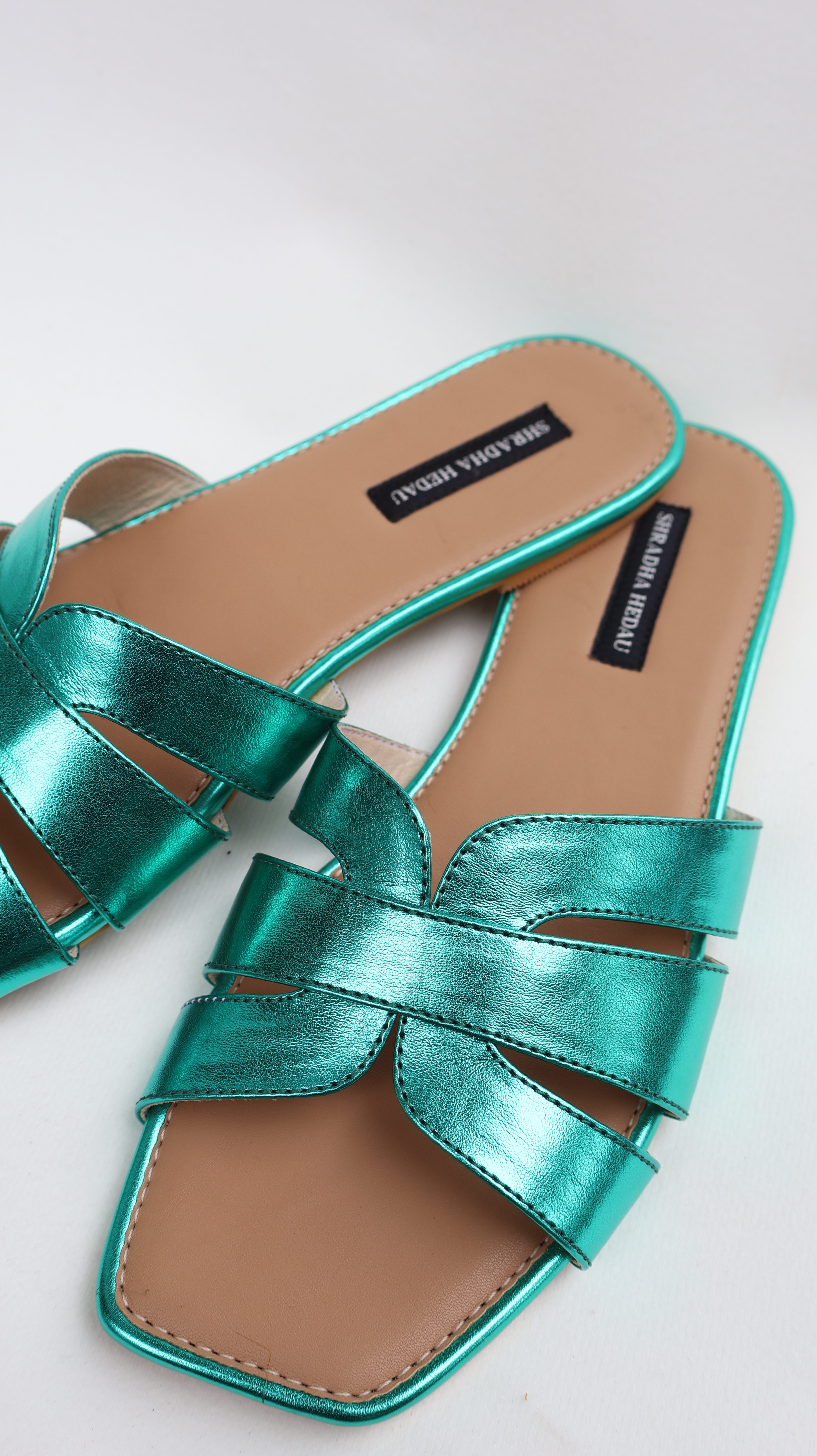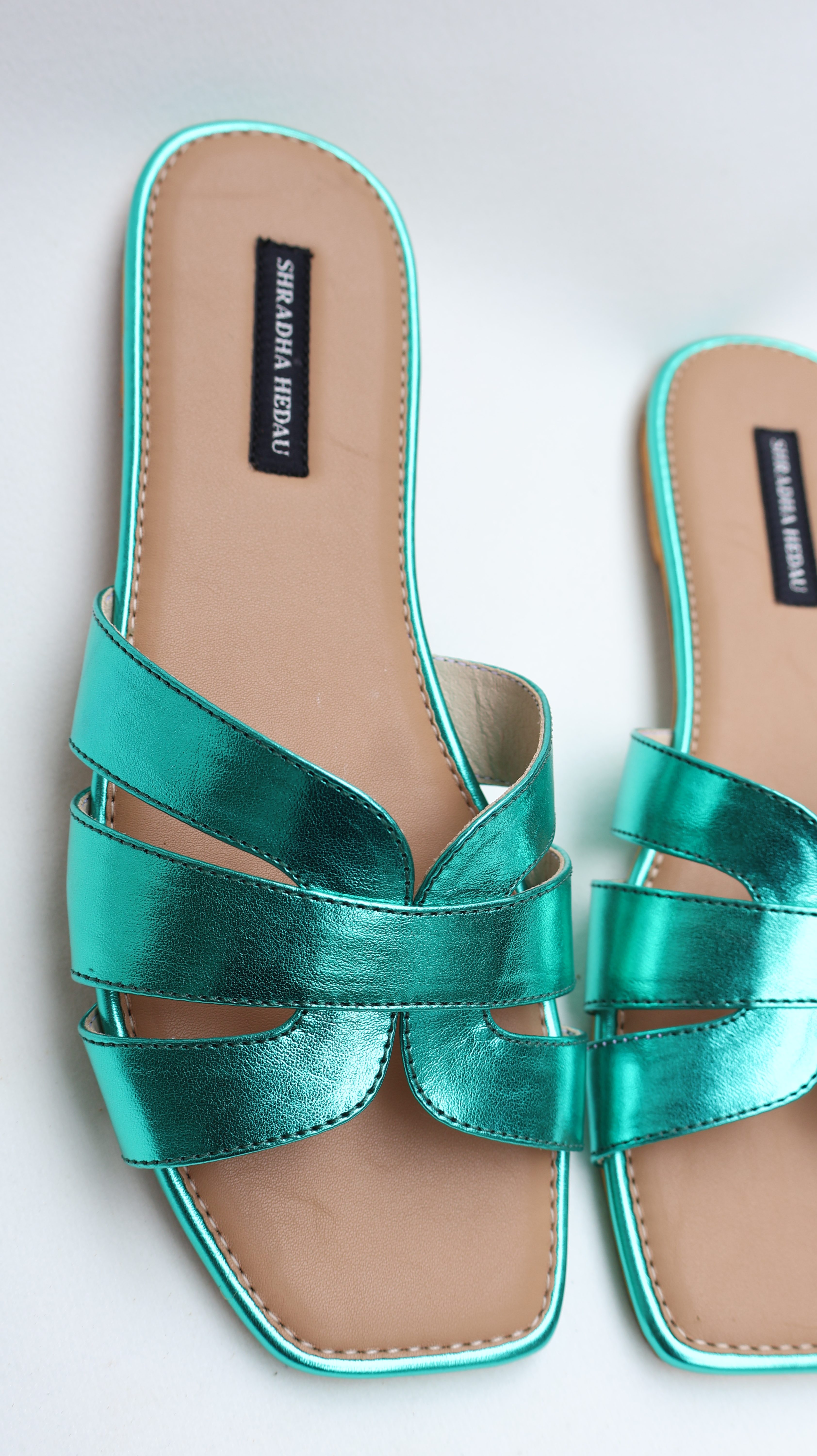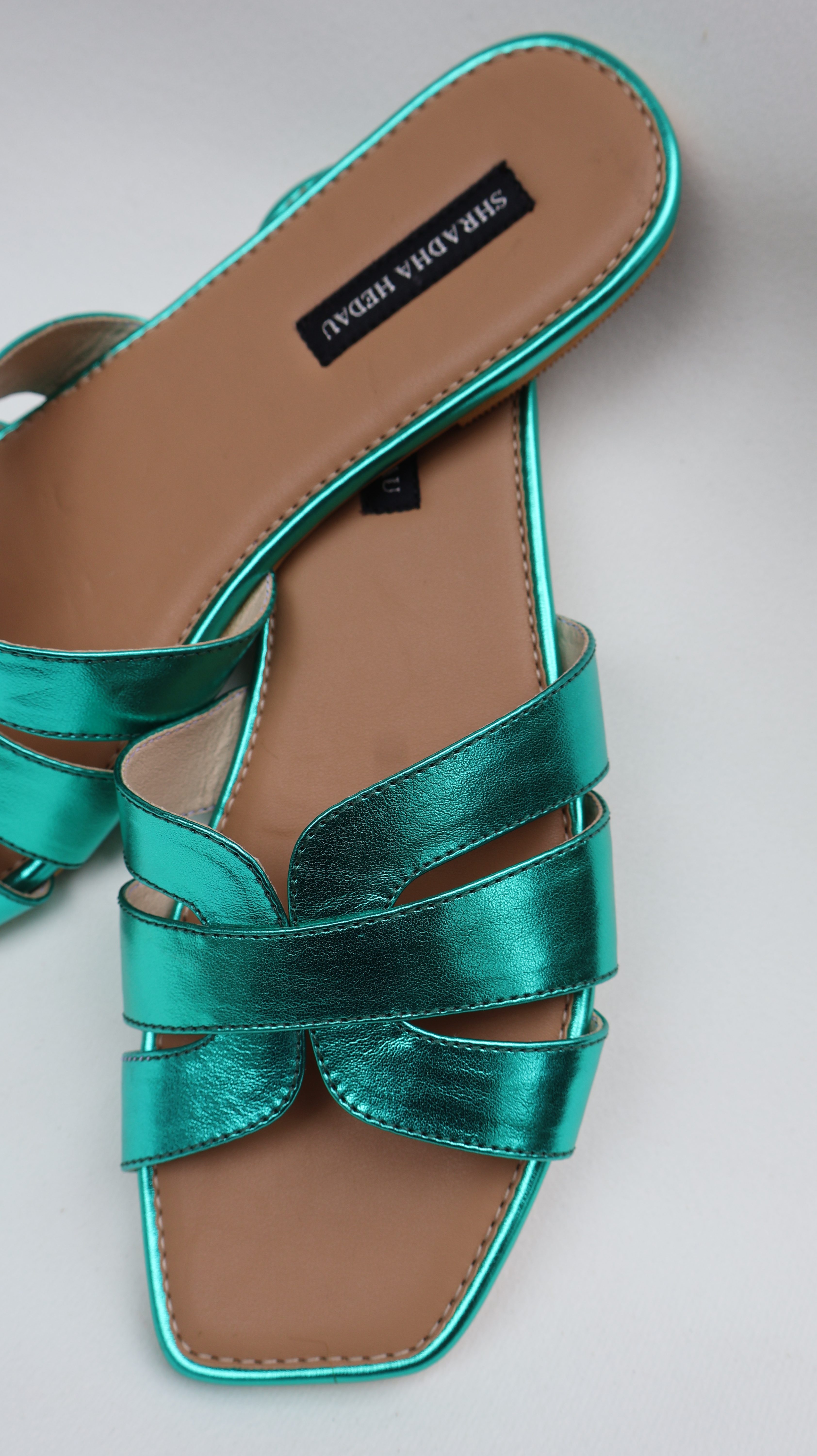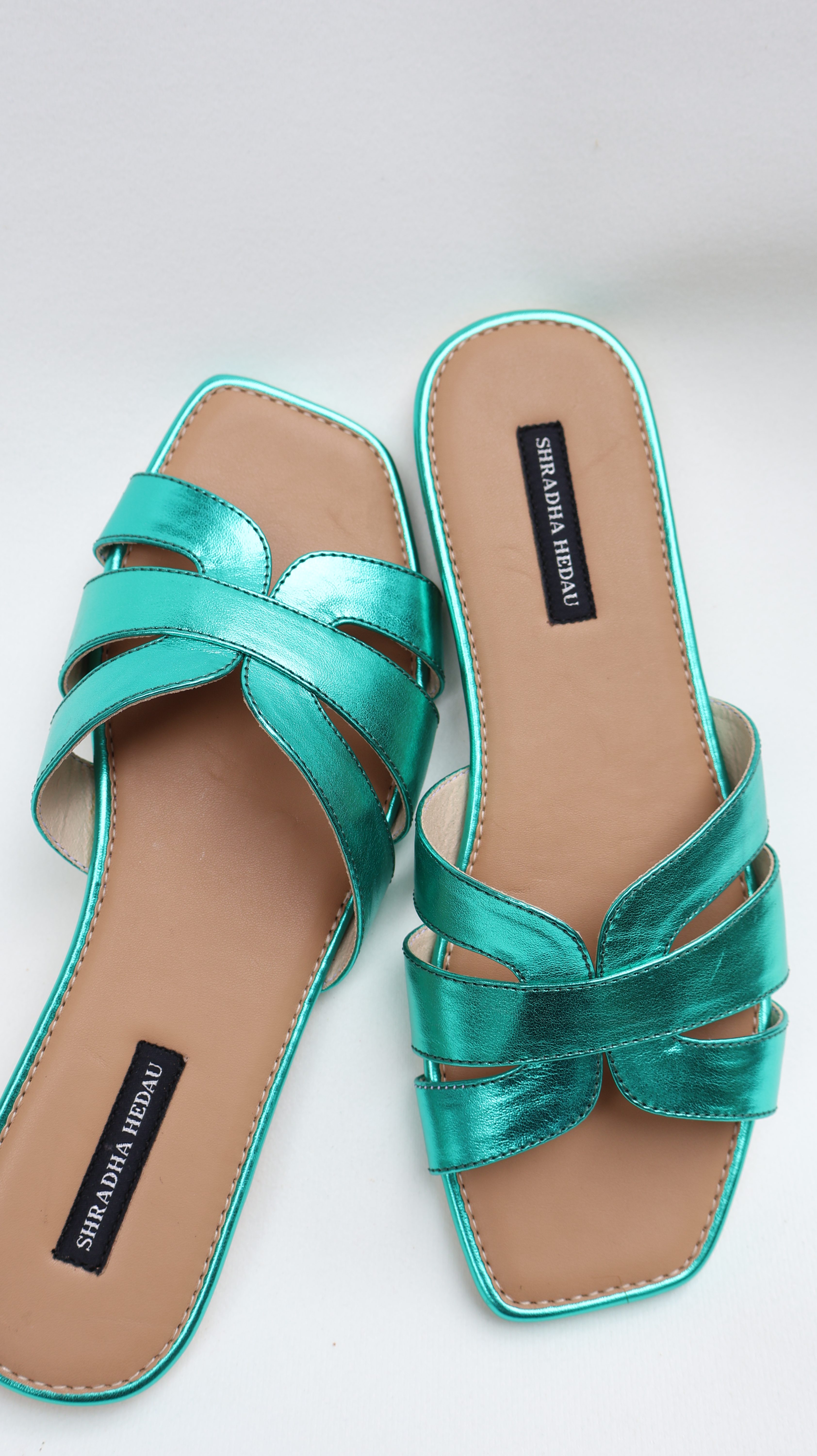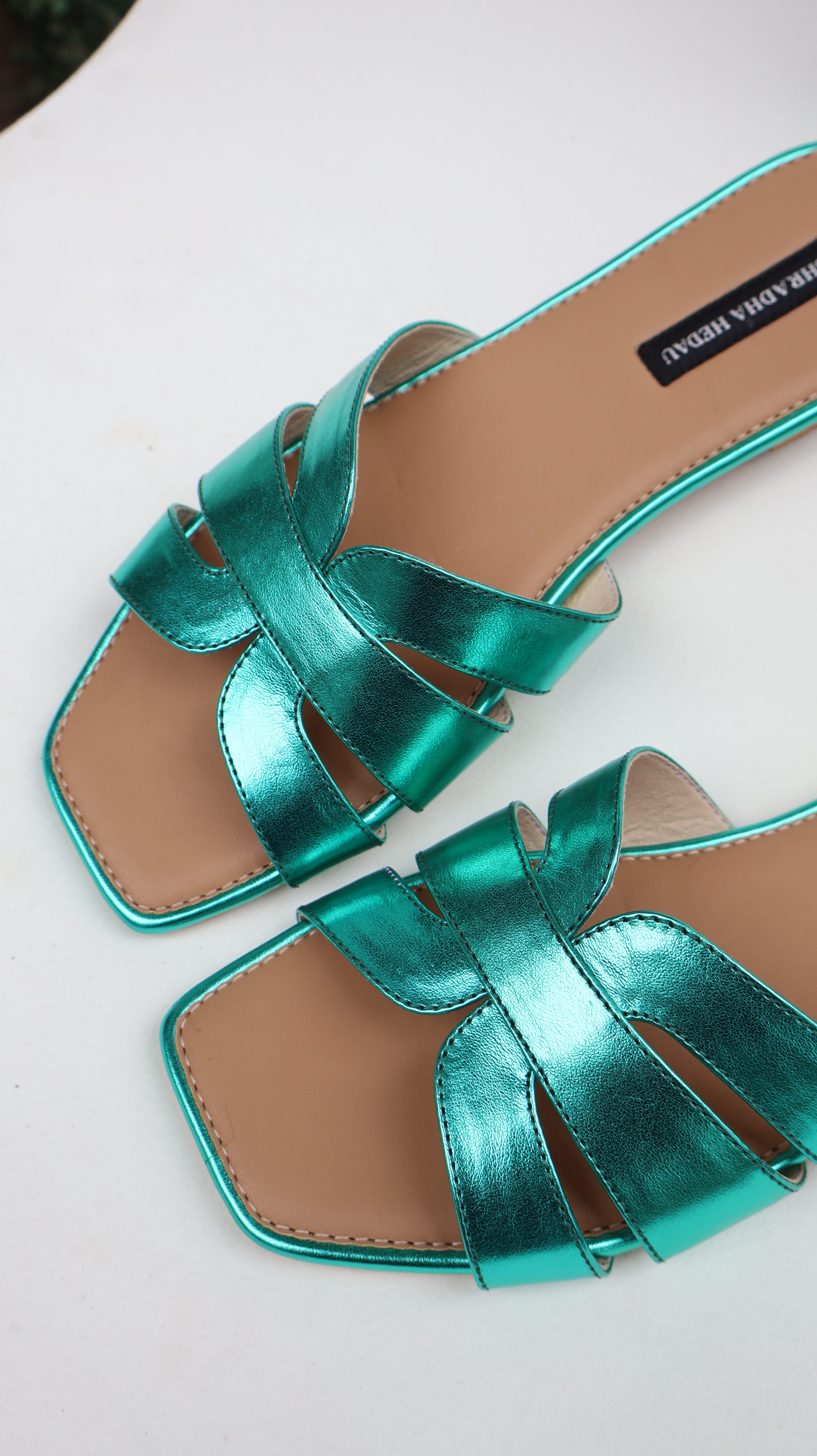 DESCRIPTION: Add a bold pop of colour to your wardrobe with these striking emerald green heels. Designed with beautifully intertwined straps, the silhouette creates a stylish knot detail that enhances the overall elegance of the pair. The sleek heel provides just the right amount of lift while ensuring stability and comfort for long wear. Finished with a cushioned insole and a square toe design, these heels effortlessly blend fashion with functionality. Perfect for festive occasions, evening outings, or elevating a simple outfit with a statement touch.